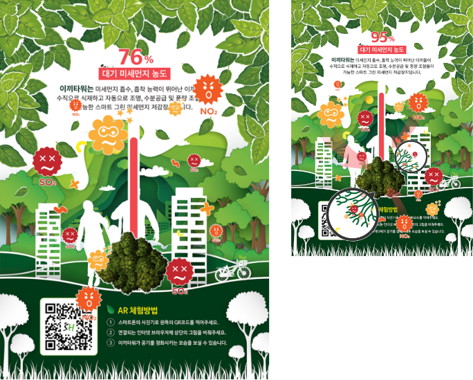 - 기존 포스터는 단순하고 제한된 양의 정보 만 전달할 수 있는 반면 WebAR 기술을 이용하면 실시간 환경 데이터를 시각화하여 시민들에게 전달 할 수 있음.